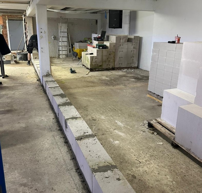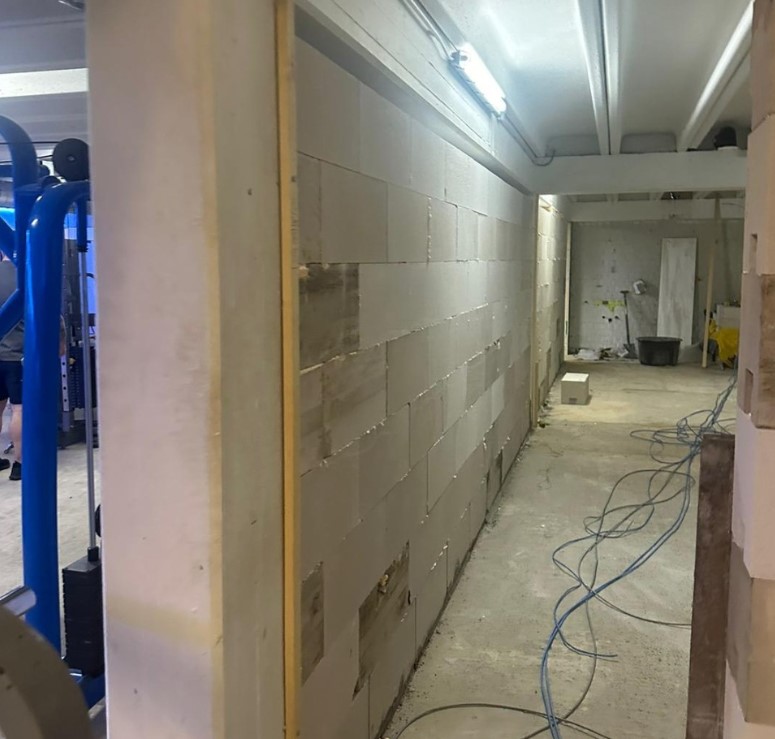 De bouwwerken zijn gestart, we bouwen een nieuwe groepsleszaal, verhuizen de fitness naar beneden.